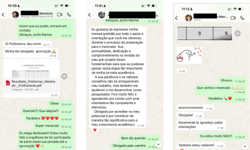 Diversas aprovações em seleções para mestrado, como da Bianca, Rafael, Gabriela e muitos outros….